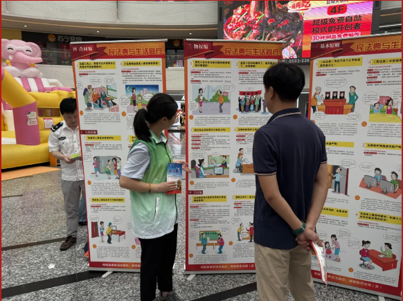 活动现场设立12个法治宣传咨询台,各参加单位通过悬挂主题横幅、陈列普法展板、发放普法宣传册等形式,鲜活呈现民法典核心内容。同时,“蒲公英”普法志愿者用通俗易懂的语言向往来群众普及婚姻家庭、财产继承、侵权责任等与群众生活紧密相关的法律条文,现场解答群众在法律方面的困惑与诉求,讲解依法维权的正当途径,让群众对民法典“一典就通”。活动现场共发放《民法典学习百问百答》《民法典要点》《民法典与生活同行》等宣传手册2000余份,解答法律咨询30余人次,有效提升了群众的法律素养和法治意识。
