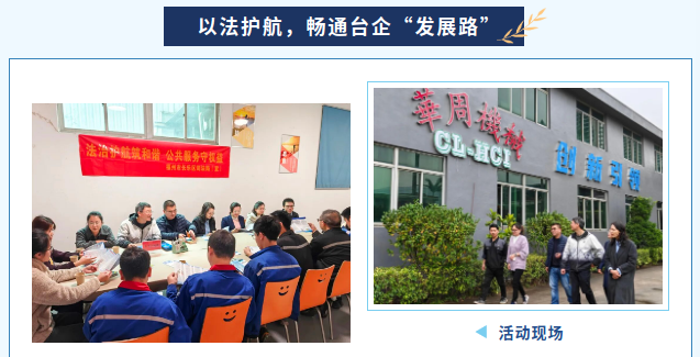 以法护航,畅通台企“发展路”活动现场长乐区司法局密切关注台企发展实际需求,主动作为,整合涉台公共法律服务资源,组建专业的法律服务团队,进台企开展“送法进企业”活动。12月19日,长乐区司法局组织鹤上司法所、公证处、法律援助中心走进华周(福建)机械有限公司开展“送法进台企”主题活动,为台企提供法治体检、法律咨询服务的同时,与台企负责人面对面交流,倾听台企发展诉求,精准解读政策举措,助力台企在航发展。并充分发挥公证作为预防性司法制度优势,为台企提供资金保管与提存公证服务,设立专项提存账户,切实维护好在航台企合法权益。2025年至今,长乐区司法局已开展“送法进企业”活动10余场,依托乡镇(街道)司法所开展涉台法治宣传30余场。